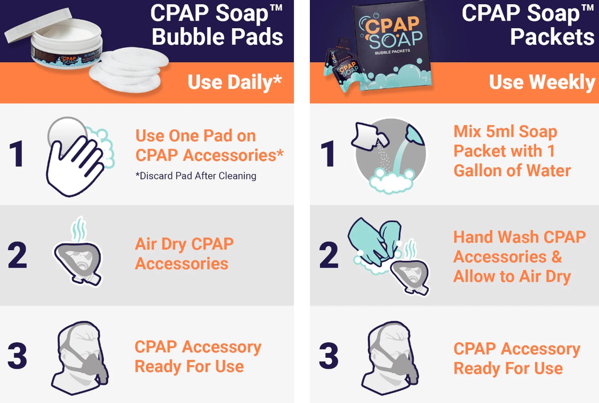 - CPAP Soap Bubble Pads – Disposable pads for quick daily wipe-downs of your mask and accessories.
